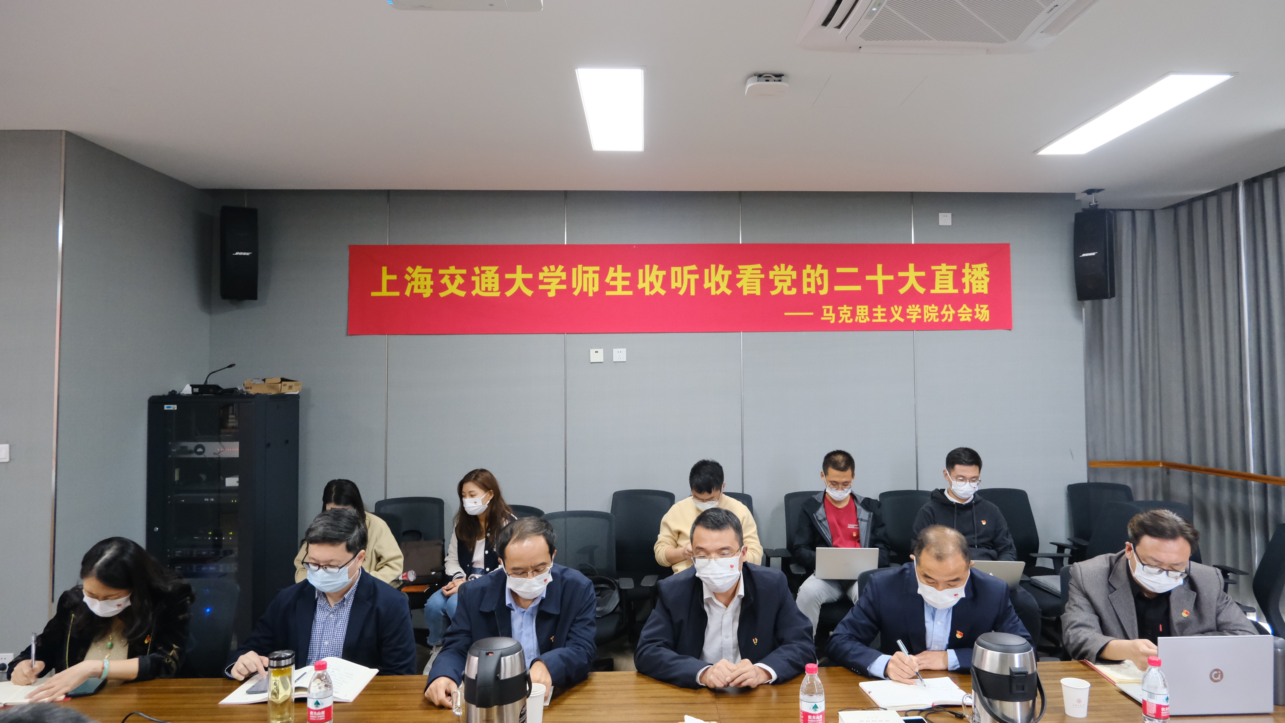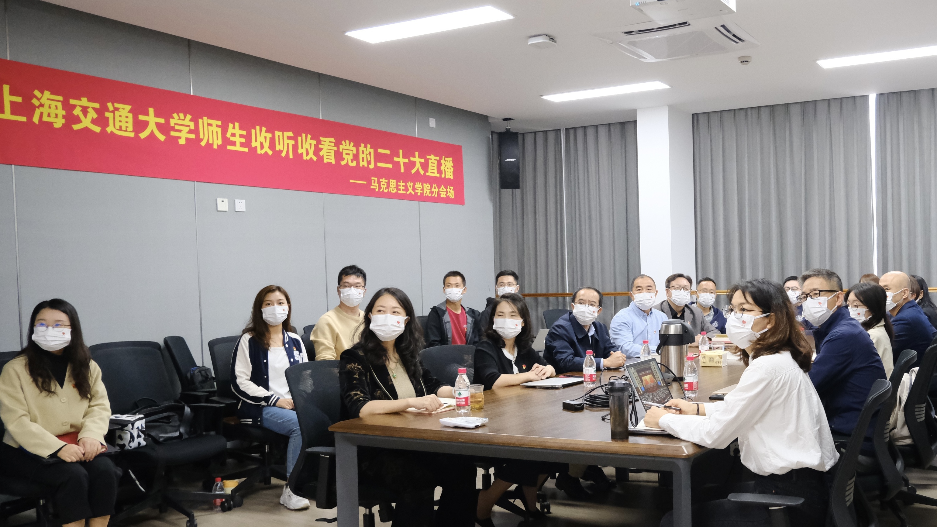 10月16日上午,中国共产党第二十次全国代表大会在北京隆重开幕。在这一重要历史时刻,必赢626net入口首页党委发动全院师生通过各种方式收听收看党的二十大开幕实况直播,实时聆听习近平总书记作报告。学院党委精心组织党政班子成员、党支部书记、教研室主任、党员代表、入党积极分子代表、教学科研骨干以及学生代表等二十余人,在学院会议室线下集体收看现场直播,会后立即展开热烈议论,纷纷表达适逢盛会的喜悦兴奋之情。