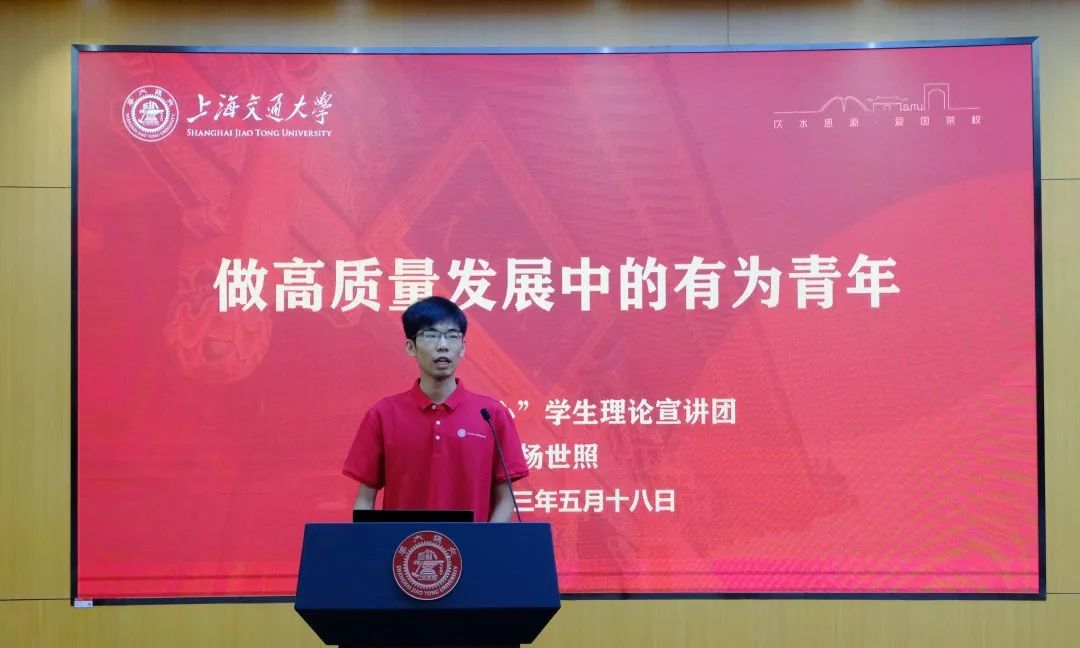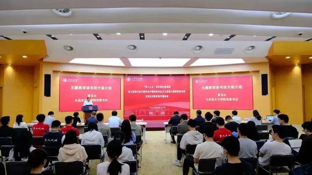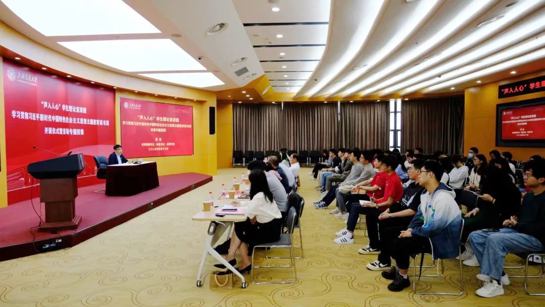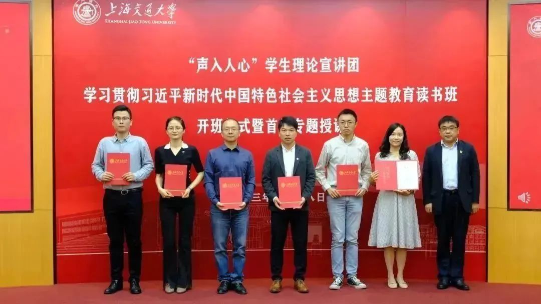 5月18日上午,上海交通大学“声入人心”学生理论宣讲团学习贯彻习近平新时代中国特色社会主义思想主题教育专题读书班开班式暨首场报告会在图书信息8楼报告厅举行。